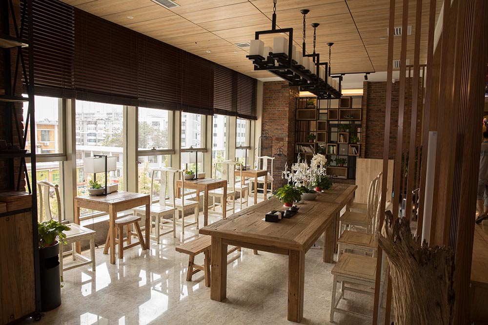 - 会所中老榆木百叶做成的屏风,使整个会所充满浓郁的自然气息,